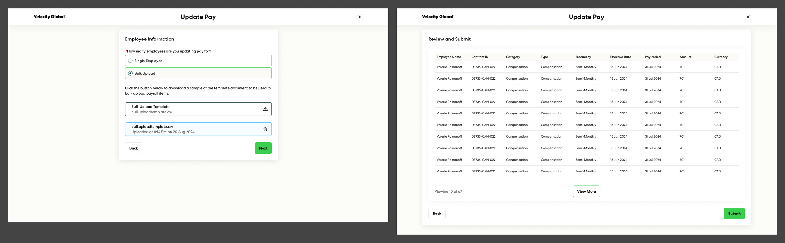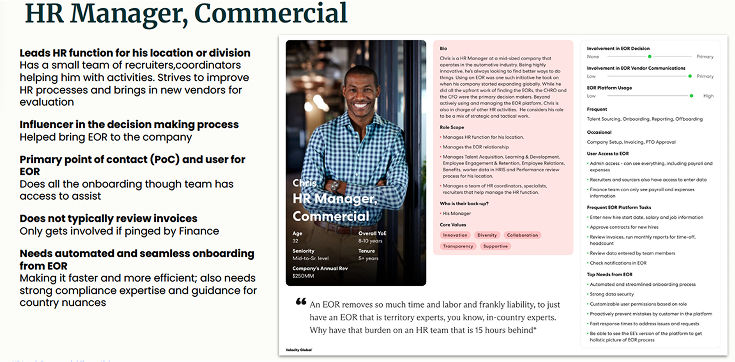 HR managers and Company Admins of customer companies that are using Velocity Global as their EOR. These users need to manage employee payroll for their company and submit payroll related change requests for their employees.
